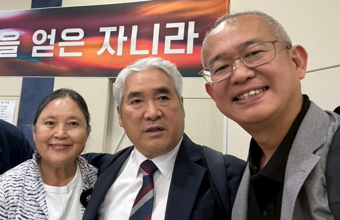 GAP宣教会代表アン・カンヒ宣教師ご夫妻(左と中央)とノー・プレイス・レフト日本代表の渡邊哲雄さん(右)